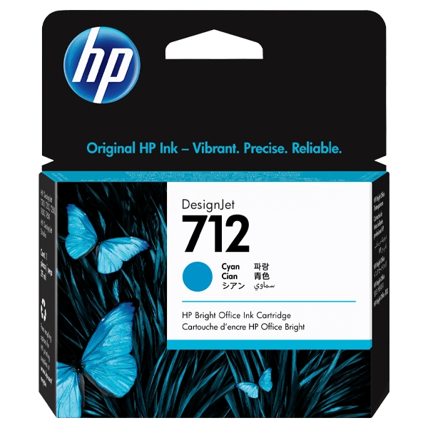 Enhance your print quality with the HP 712 29ml Cyan DesignJet Ink Cartridge, perfect for vibrant, precise color output.