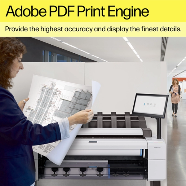 Deliver versatile designs, from precise line drafts to vibrant 3D renders, using HP Bright Office Inks. Achieve the highest accuracy and detail with the Adobe PDF Print Engine. Meet tight deadlines with speeds up to 180 D/hr and automatic print stacking. Simplify digitization with automated scanning and user-friendly quicksets.